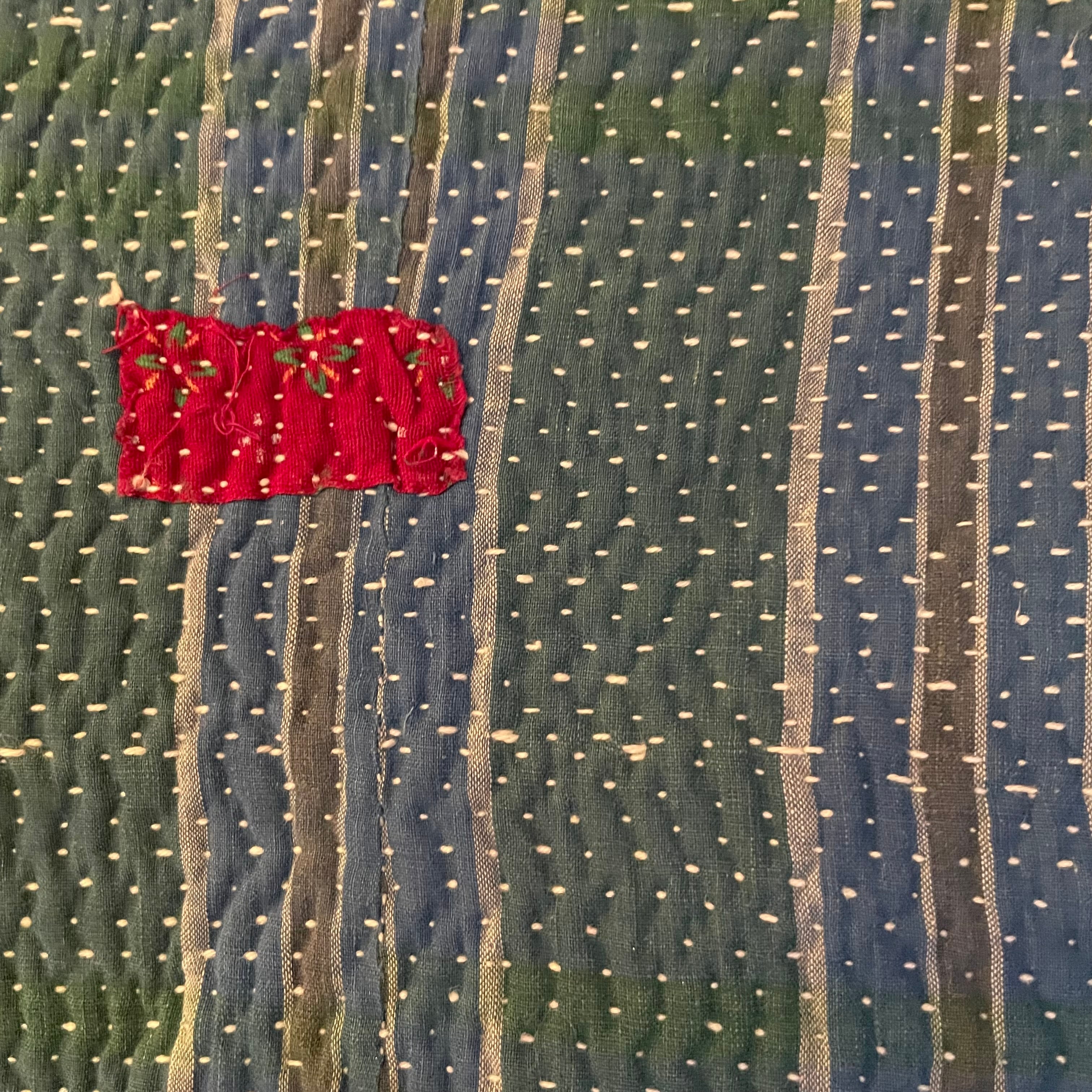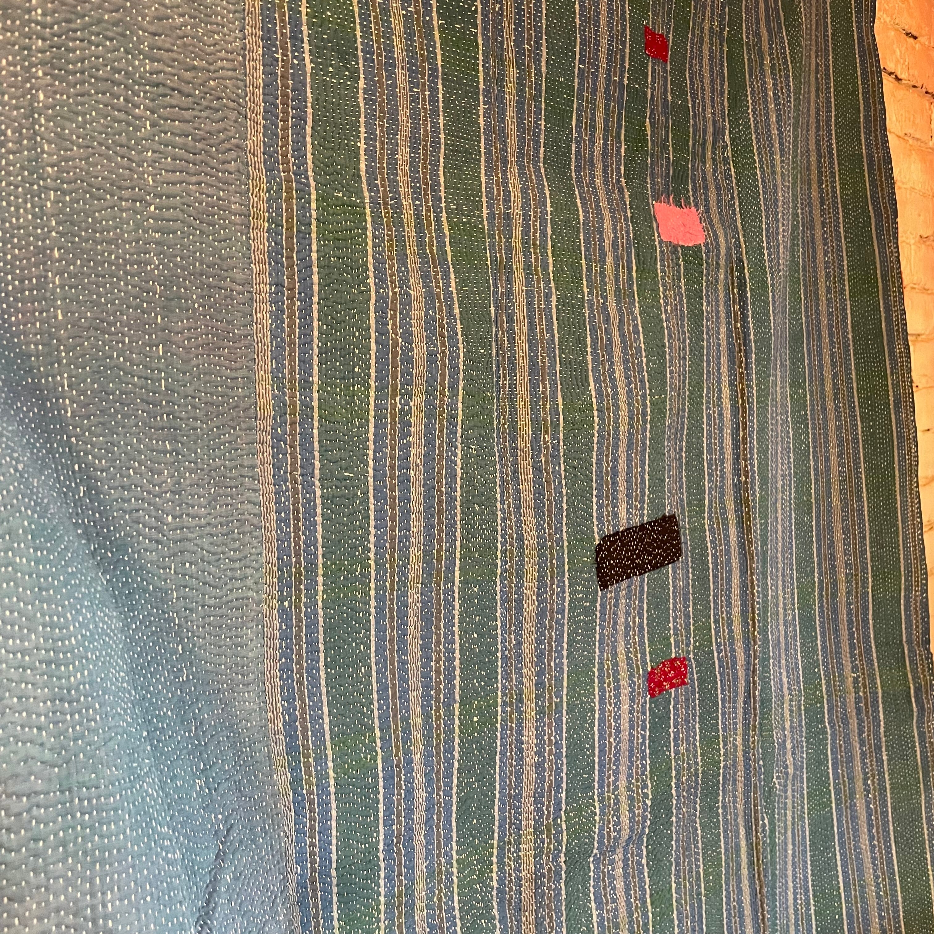 カンタキルトは、インドの伝統的な手芸で、職人たちが特殊な技法で縫い合わせることで美しい模様が生まれます。ヴィンテージ カンタキルトは、数十年前に作られたもので、独特な風合いと色使いが魅力です。一枚一枚には、職人の手から生まれた温かみと質の高さが感じられます。