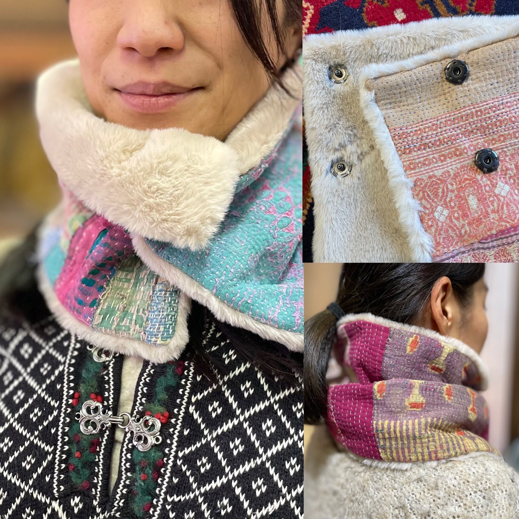 インド産のヴィンテージの*カンタキルト生地を使ったネックウォーマーです。